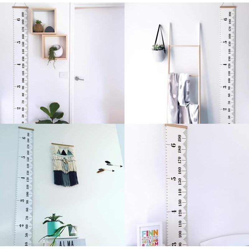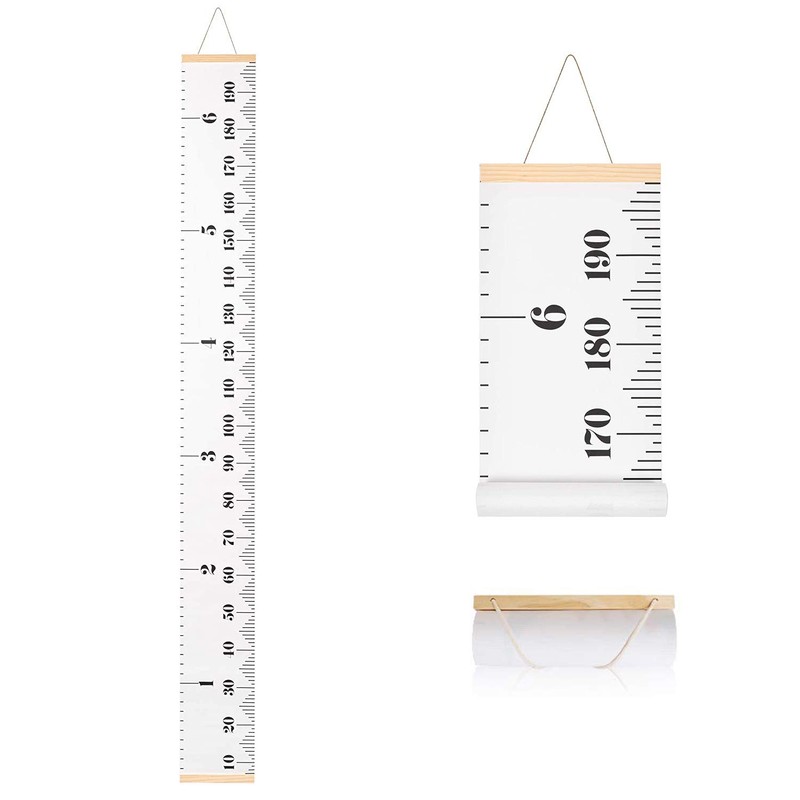 SUJAYU Growth Chart for Kids, Canvas Height Chart Ruler Removable Wood Hanging Wall Ruler Measurement Chart for Home Decoration (White)