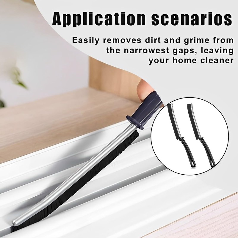 SUJEBKC 2-piece cleaning brush, for tile recesses in the bathroom, long-handled household cleaning tool for toilets, kitchens, joints, windows, doors, black