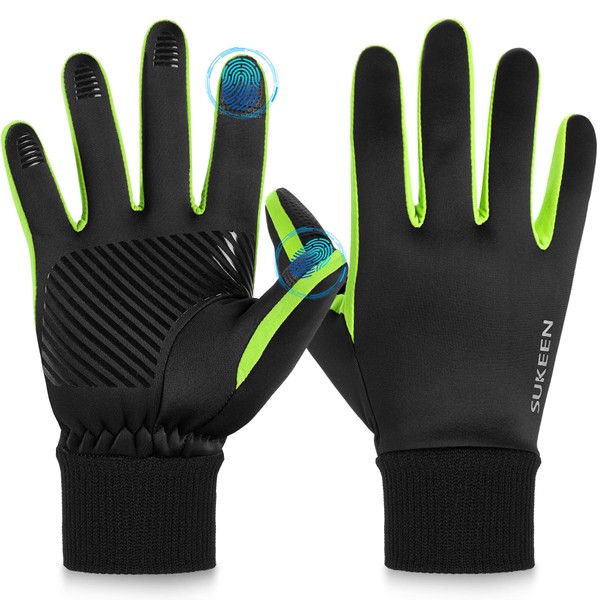 Sukeen Cycling Gloves Men Women Winter Gloves Touchscreen Gloves Thermal Gloves Driving Gloves Warm Black Gloves Sports Gloves for Cycling Running Hiking (Green, M)
