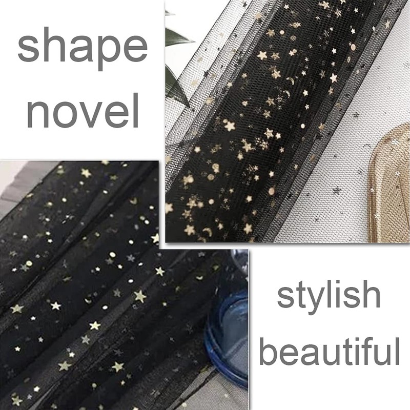 • ✪【Package Includes】The set includes a roll of tulle decorated with black stars and sequins, which is enough to meet your daily needs.