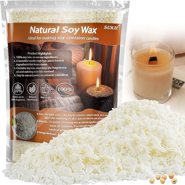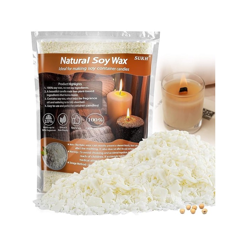 Sukh Soy Wax for Candle Making - Natural Soy Wax Flakes Pure Cera para Velas Candle Making No additives Supplies for Container,Cup,Scented,DIY