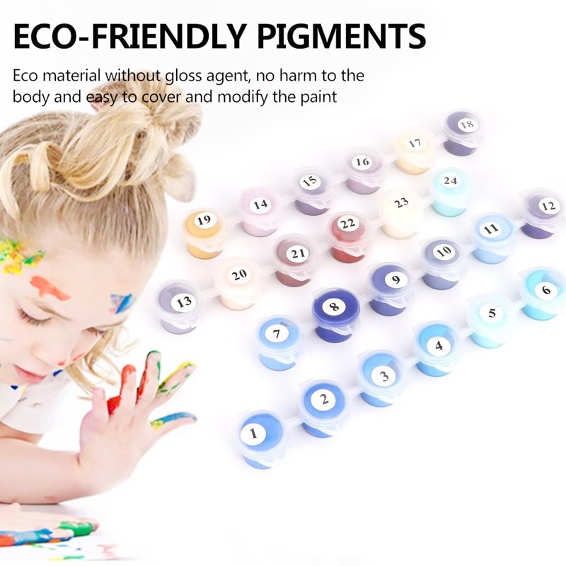 - ♥【Complete Tool Kits】:DIY paint by numbers for adults has a complete tool kit. Package includes 20” x 16” pre-printed paint by number canvas, 3 different size professional brushes, high-quality acrylic color paints Open the package and you can enjoy the fun of paint by number.