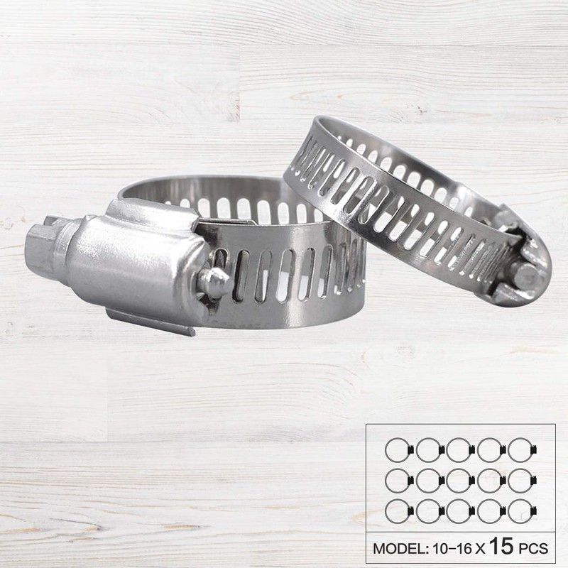 Sukudon Hose Clips Adjustable Stainless Steel Hose Clamps Worm Drive Pipes Hose Clamps Clips,15 Pack (10-16 mm)