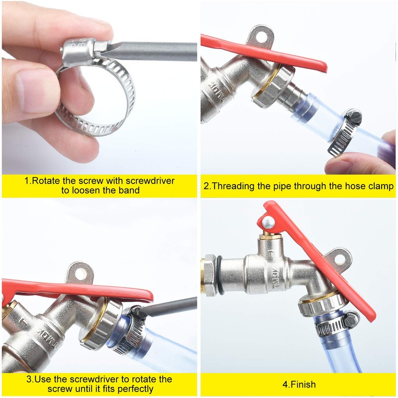 - EASY TO INSTALLL AND REUSABLE: The hose clamp designed with a worm gear mechanism to adjust the clamps diameter to precisely apply sealing pressure. It attaches hoses for fitting hoses in confined spaces to prevent flow leakage. These clamps also can be recycled and reused due to the 306 stainless steel material which makes them worked last for long