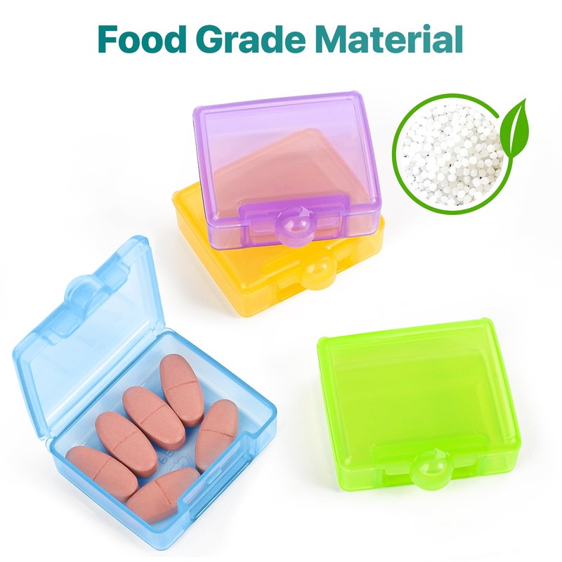 Sukuos Small Pill Box 4 pcs, Cute Travel Pill Organizer for Pocket Purse Portable Daily Pill Case Container for Vitamin Fish Oil Supplements, Easy to Open & Clean