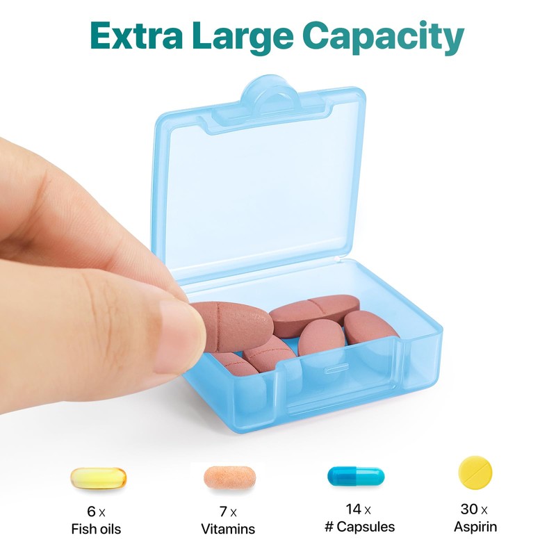 - Easy Pill Management: The individual small daily boxes allow you to take out a single day's or a few days' worth of pills when you are on the go. Each daily pill case can hold up to 5 fish oils or 9 large vitamins.