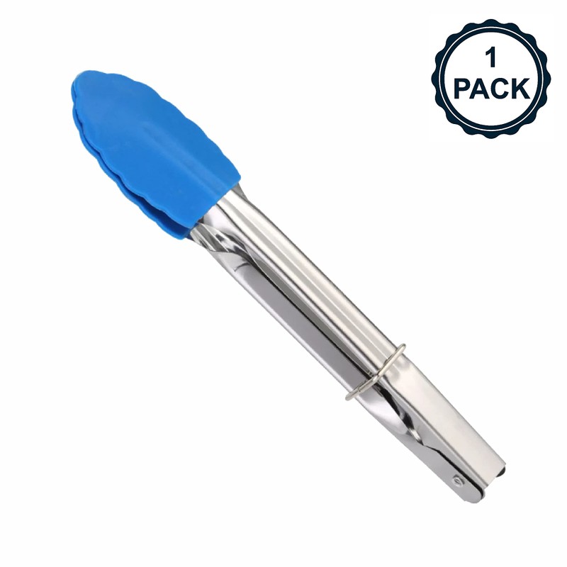 SUL Kitchen Tongs Stainless Steel Kitchen Silicon Tongs Cooking Tongs for Grilling Frying with Silicon Tips for Cooking, Serving, Buffet Serving Tongs, Salad Tongs (7 inch -18cm) (Blue, 1)