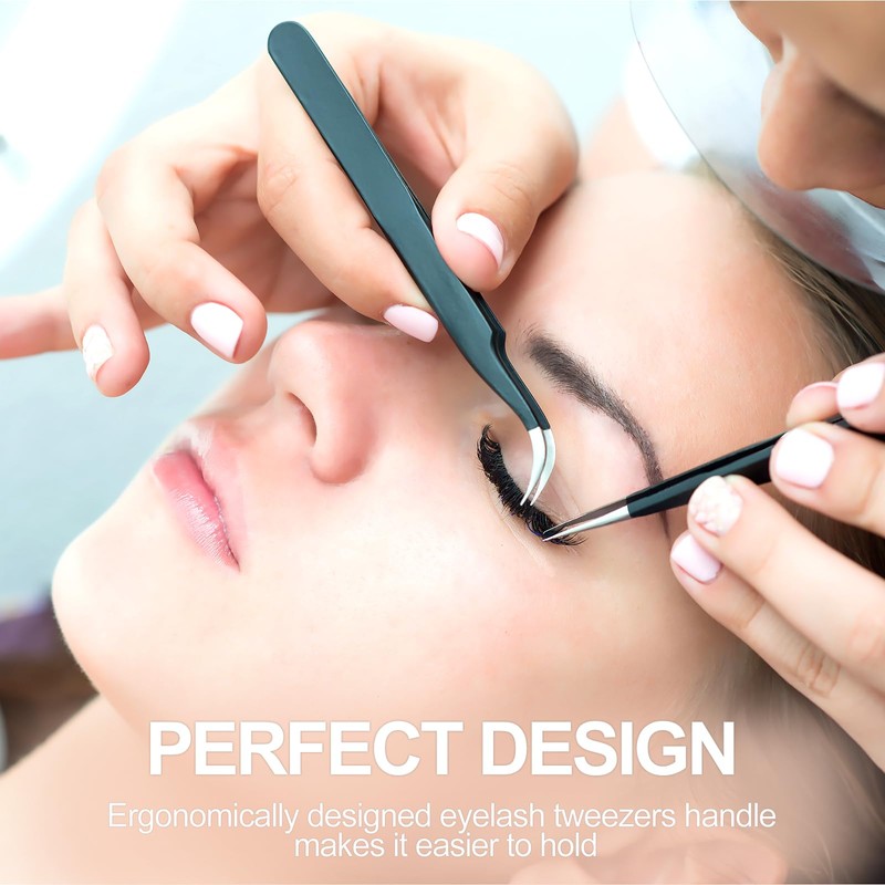 - 【Perfect Design】The ergonomically designed handle of eyelash tweezers makes it easier to grip. Straight tip tweezers can be used to pick up small hairs. Curved tip tweezers are perfect for separating eyelashes