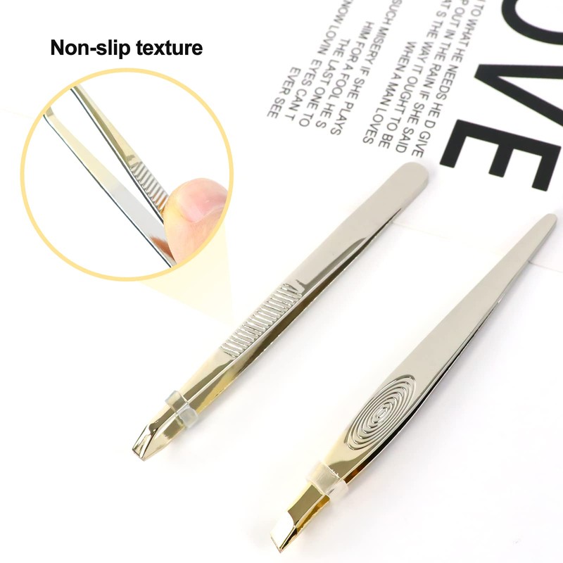 - Slanted Edge:Forget inaccurate plastic tweezers, and marvel at the perfectly aligned, graduated tips of our slant tweezers. Enjoy perfectly calibrated tension for more control and an effective, stress-free tweezing ritual.