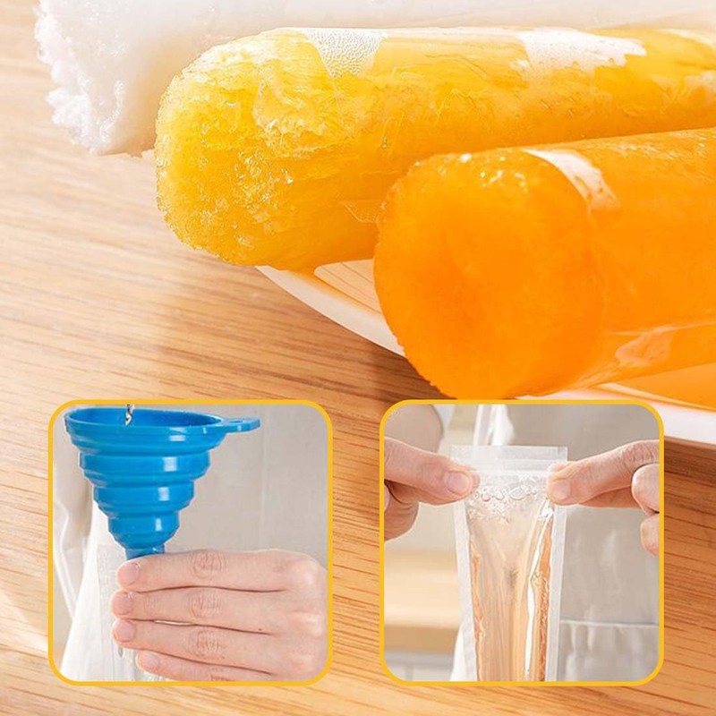 SULIUDAJI Pack of 100 Popsicle Mould Bags, Ice Pop Bags, Pop Mould Bags, Popsicle Bags, Comes with Two Straws and a Funnel, for Yogurt, Ice Sweets, Ice Cream