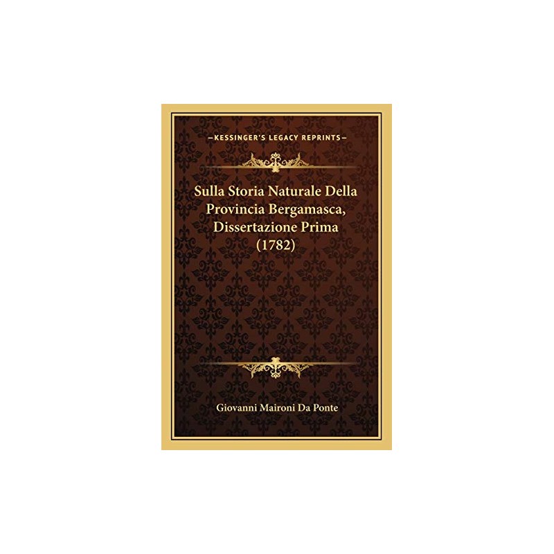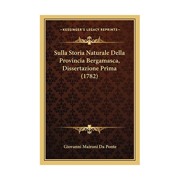 Sulla Storia Naturale Della Provincia Bergamasca, Dissertazione Prima (1782) (Italian Edition)