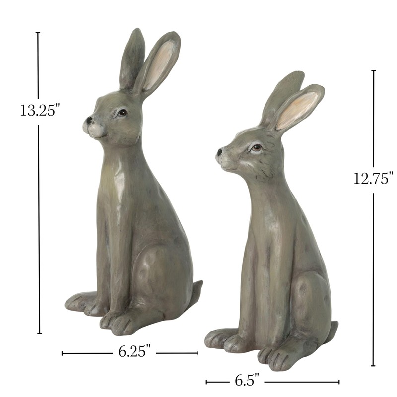 Sullivans Easter Bunny Rabbit Set of 2, 12.75" Sitting Grey Resin Easter Bunnies, Spring Decorations, Rabbits Décor, Tabletop Coffee Table Decorations, Office, Living Room Décor