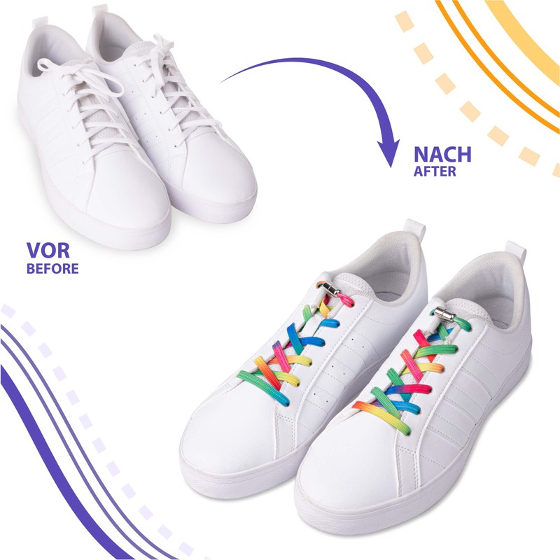 - Cool style: Try three types of shoe tying: classic method, alternative method without tying and also the no tie method with a metal quick release. Make a lasting impression. Our laces are available in different colours and provide a cool and trendy look that enhances your shoes.
