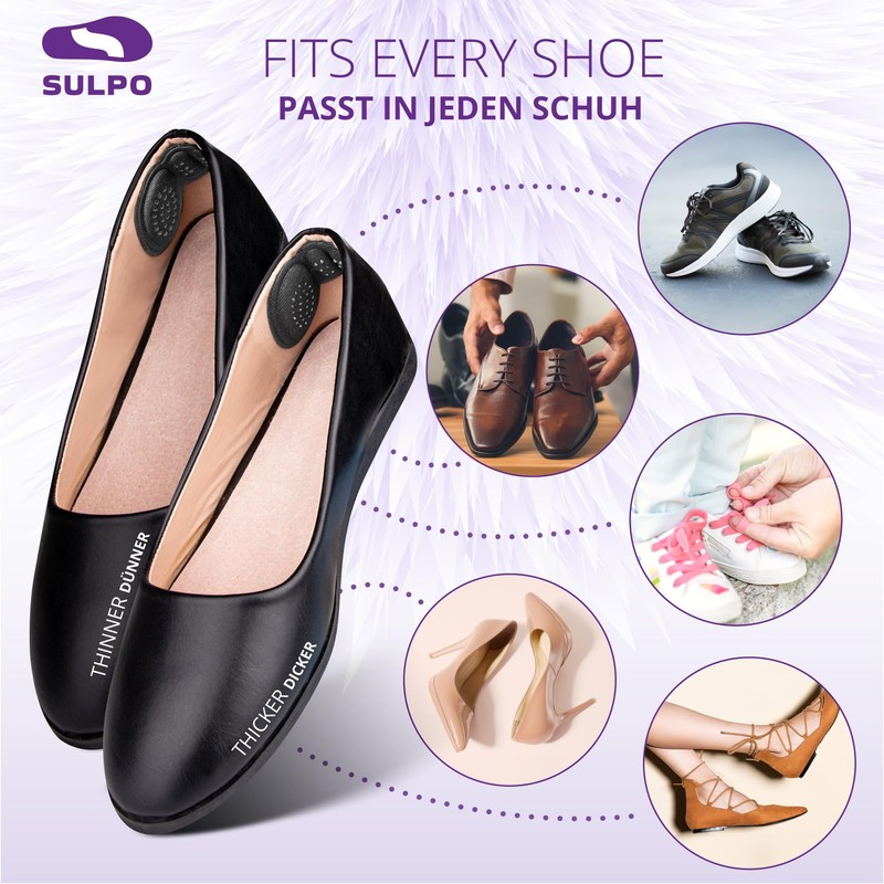• Universal fit: available in black and beige, the SULPO heel cushions match a variety of shoes and are suitable for any occasion. Whether you wear high pumps, flat shoes or trainers, these heel cushions provide you with the necessary comfort and protection.