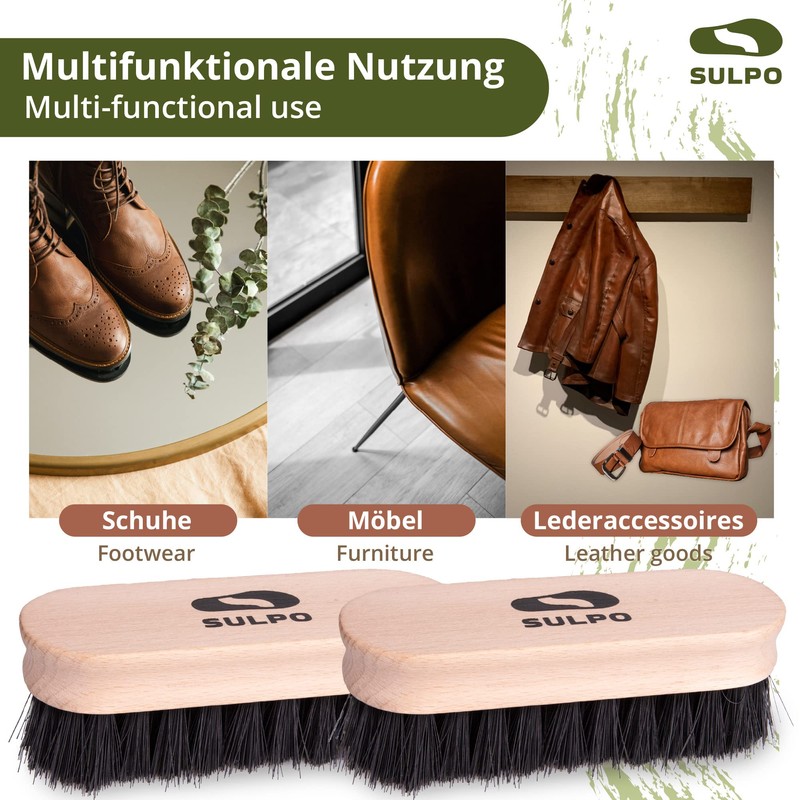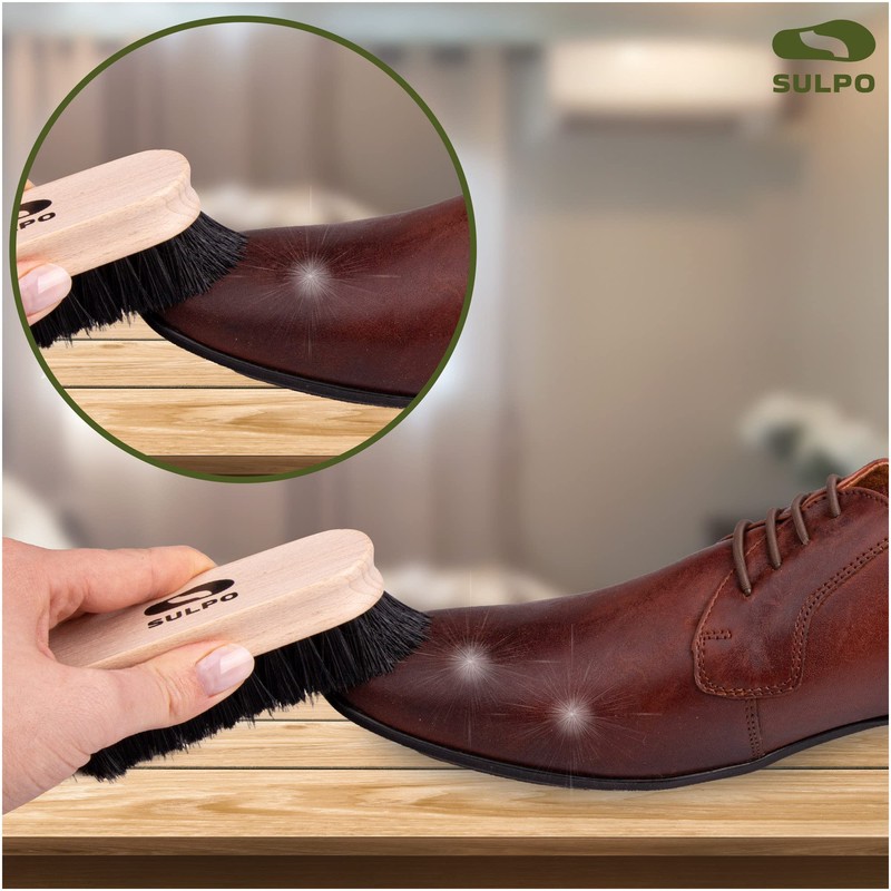 SULPO Shoe Brush Length 12 cm – Shoe Cleaning Sets Shoe Cleaning Brush Leather Brush Cleaning Dirt Brush Soft Bristles Black Polishing Brush – Set of 2 – Shoe Care