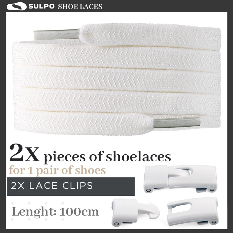 SULPO Shoelaces without Tying - 2 Pairs Shoelaces Quick Release - Elastic Shoelaces, 100 cm Long, Flat Rubber Shoelaces, No Tie Trainers Shoelaces, White