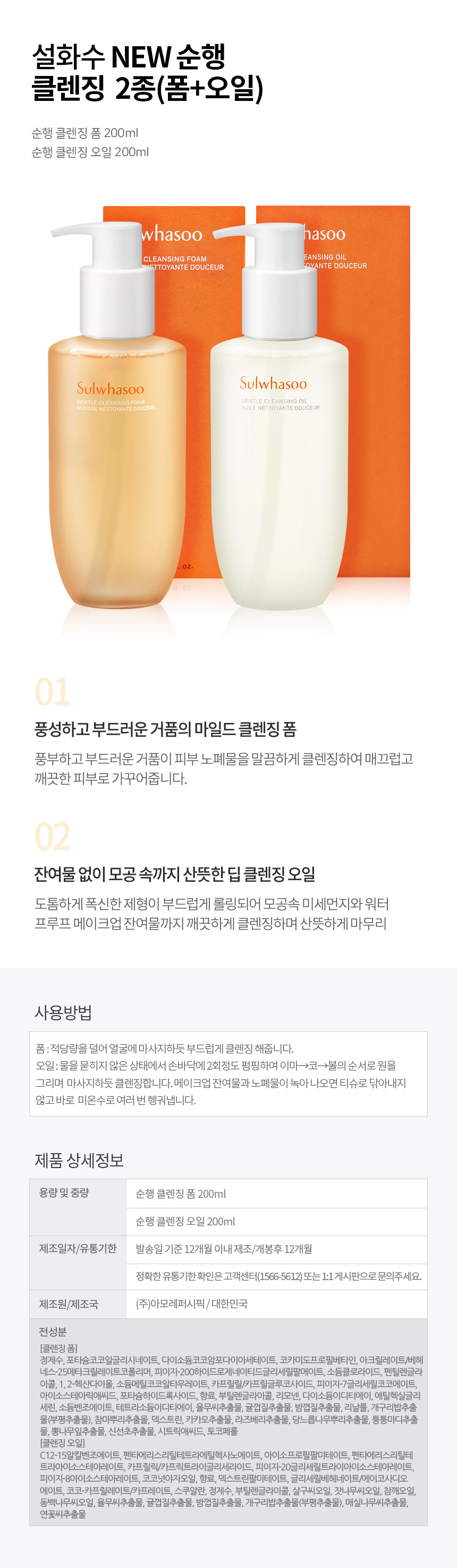 Sulwhasoo Gentle Cleansing 2 types (Foam 200ml + Oil 200ml) / 설화수 순행 클렌징 2종 (폼200ml+오일200ml)