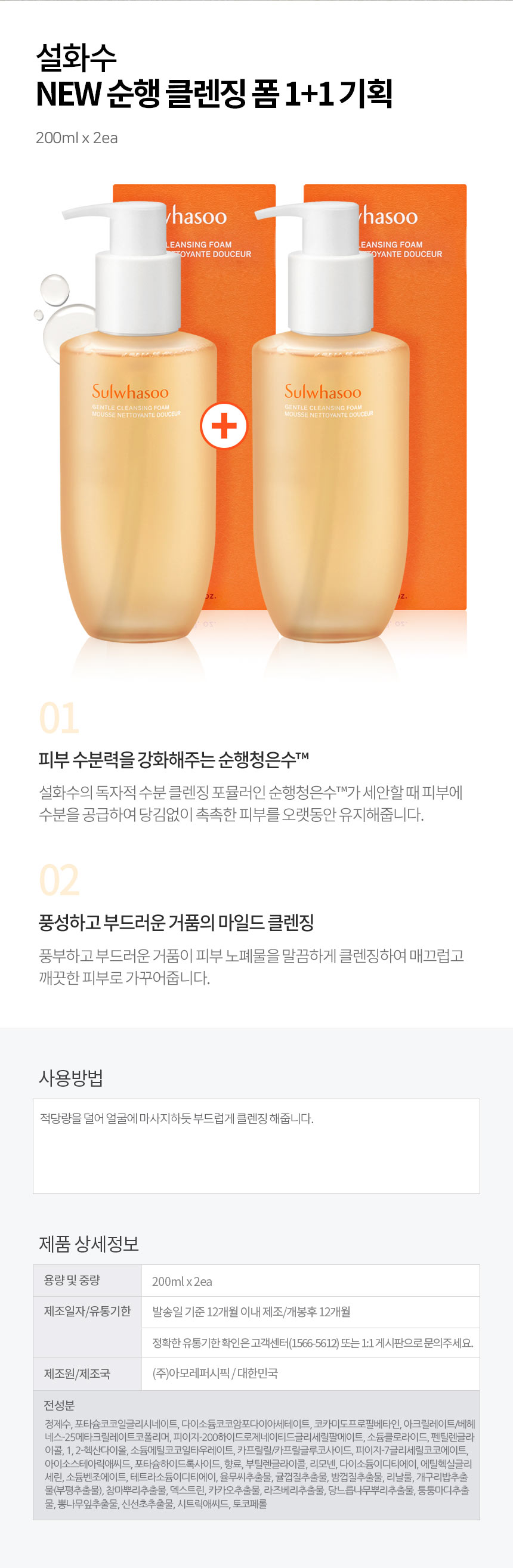 설화수 순행클렌징폼 200ml x 2개 촉촉한 수분폼