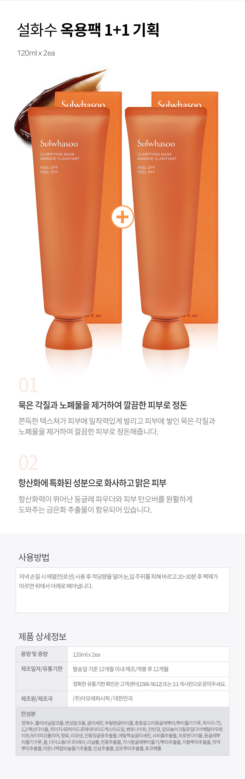 설화수 옥용팩 120ml x 2개 필-오프팩