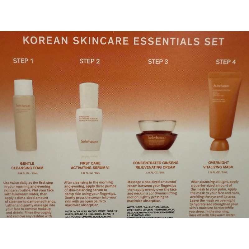 SULWHASOO Korean Skincare Essentials 4 Pc Set, Cleanser+Serum
