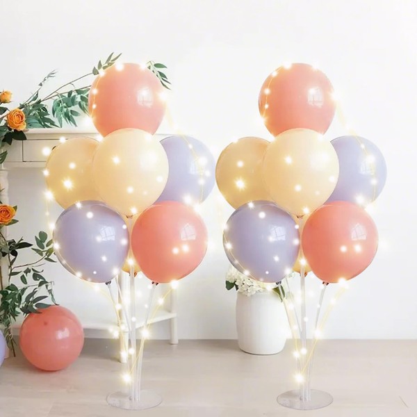 SumAAfu 【2台+風船セット+10メートルUSBライト】バルーンスタンド 風船セット バースデー 誕生日 飾り LEDイルミネーションライト USB式 床用 ホルダー 2台 男の子 女の子 スタンド ホルダー 卓上式 バルーンスティック 誕生日 結婚式 パーティー 飾り付け 開店祝い 周年祝い 生誕祭 発表会 (アンズ+ピンク)
