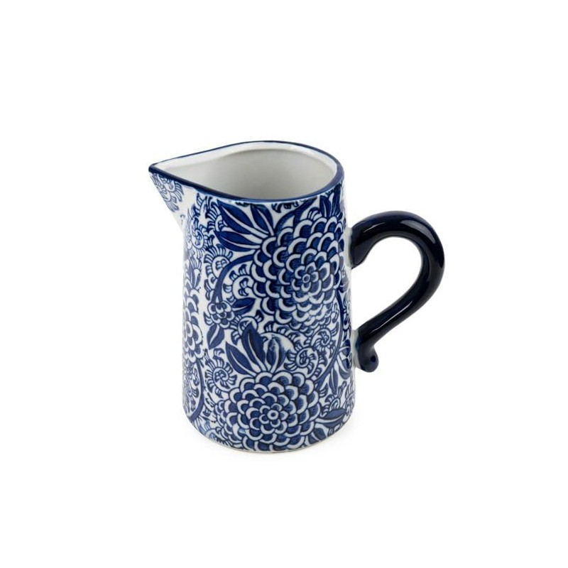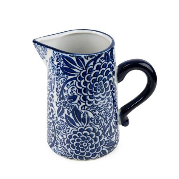 Sumatra Blue and White Floral Ceramic Pitcher, Decorative Serving Jug, Traditional Chinese Pattern (Small 14cm Jug)