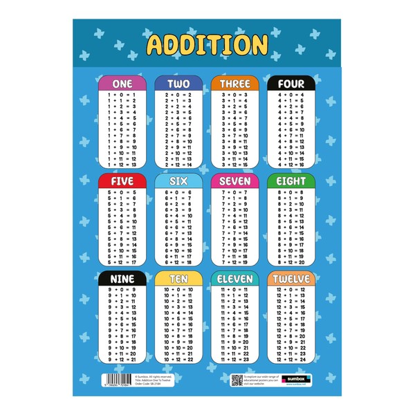 Sumbox Addition Educational Math Poster, Multiplication Chart Table, Teaching Classroom Posters, Learning Accessories For Kids Children, Maths Mathmatics Wall Chart