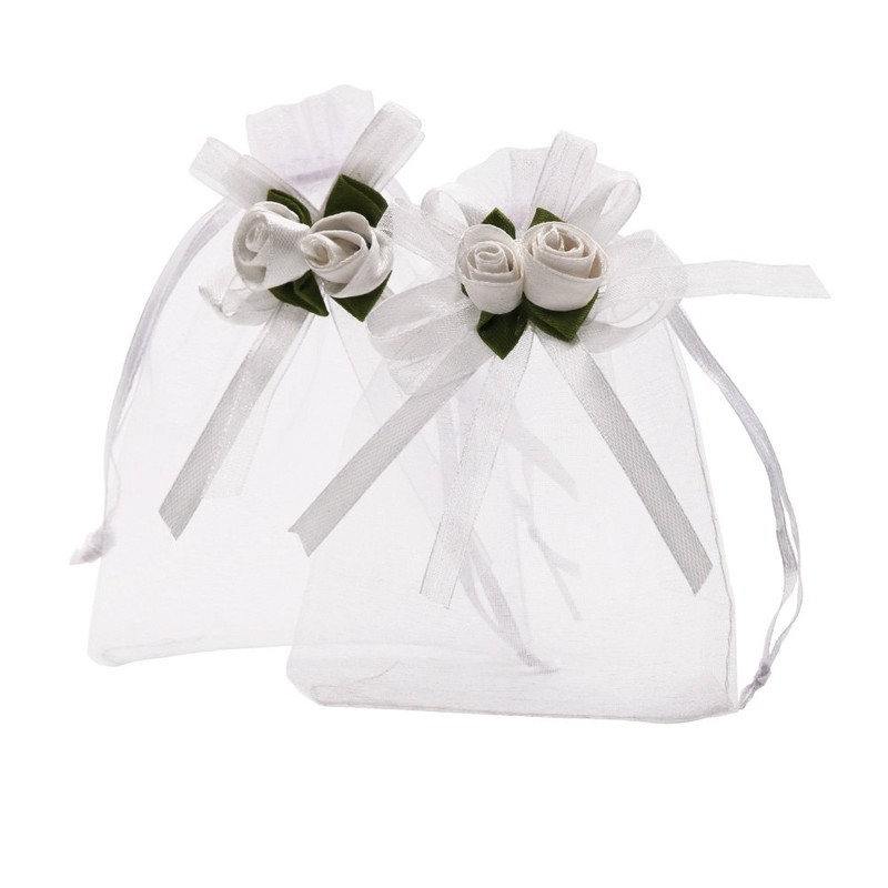 - Rose Decoration: White rose decorated organza bags, adding cure and lovely to the bag.
