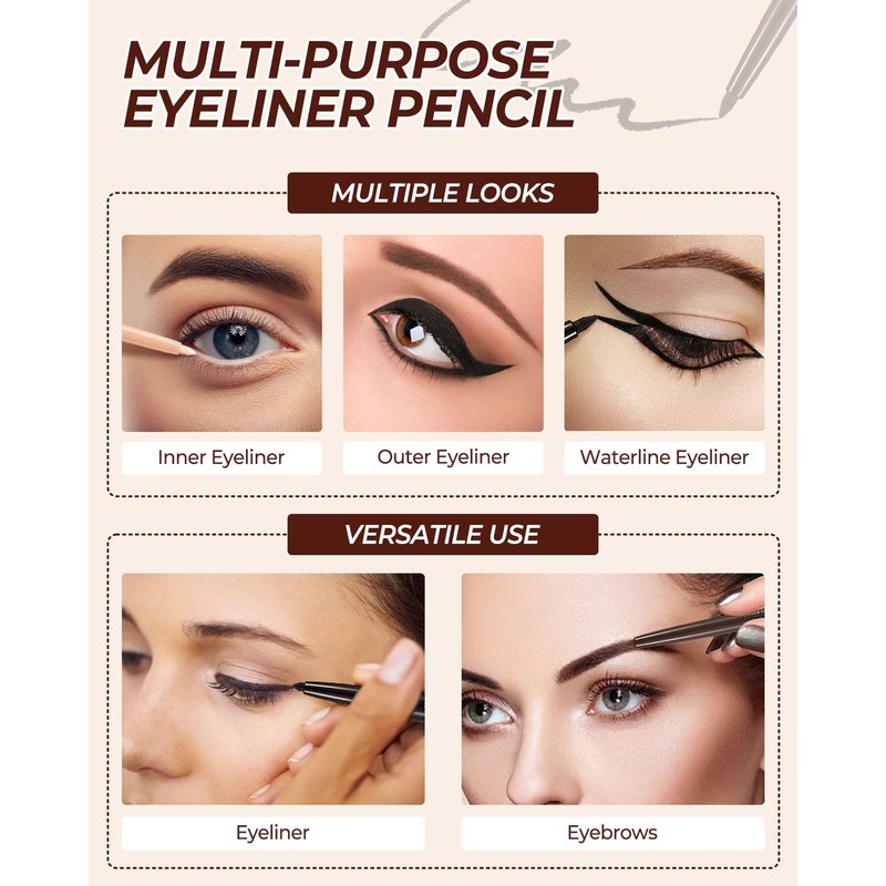 - EYELINER WATERPROOF SMUDGE PROOF:Our eye liner is waterproof, sweat-proof and smudge-proof, can last for all day. You don't have to worry about it will fade or smear. And it could ensure your makeup stays put and fresh throughout the day, keeping your eyes looking stunning from morning to night