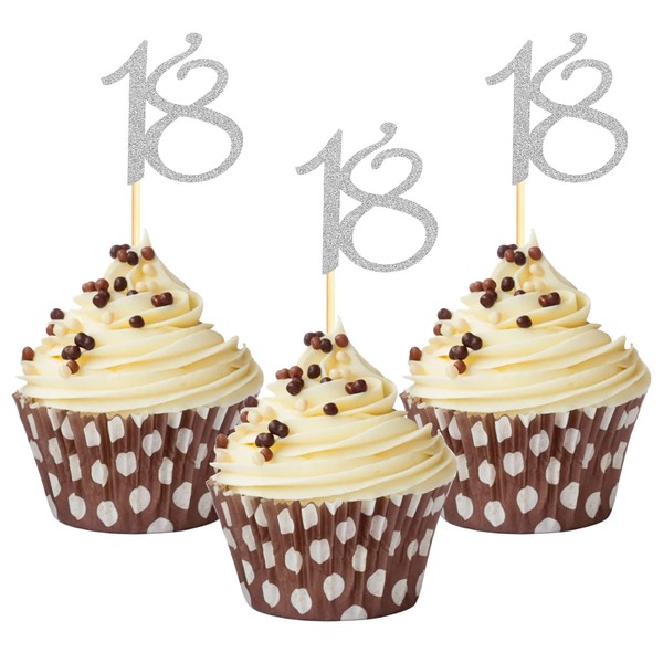 Sumerk 24PCS 18 Cupcake toppers Silver Glitter 18th Birthday Cupcake Picks Anniversary Party Decorations