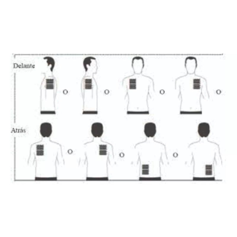 Colocar el parche en los puntos sugeridos en la foto de la publicación, limpiar con un paño húmedo la zona a pegar el parche de preferencia en lugares lisos sin vello, Se puede usar un yeso durante 2-3 días.