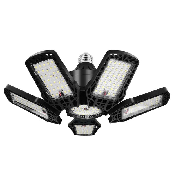 SumKea LED Garage Lights 200W - 1 Pack, 20000LM Led Shop Light with Adjustable Panel, 6000-6500K Daylight, 360° Illumination Ceiling Lights, E27/E26 for Warehouse Garage Attic Basement