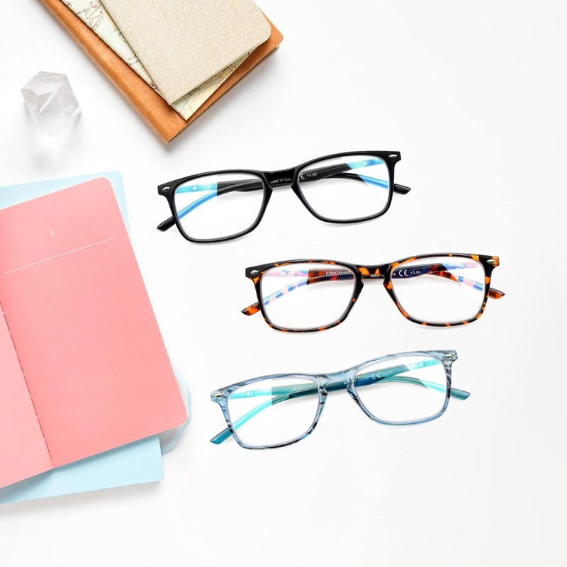 Sumkyle Sumkyle 3 Pack Progressive Multifocus Reading Glasses for Men Women Blue Light Blocking Spring Hinges Computer Readers (3 Black,3.50)