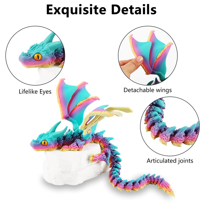 - 【3D Printed Dragon】15.75inch 3D Printed Dragon & 10.24inch Dragon Wing,the dragon features articulating joints and detachable wings for dynamic play. Adult supervision required for initial assembly.