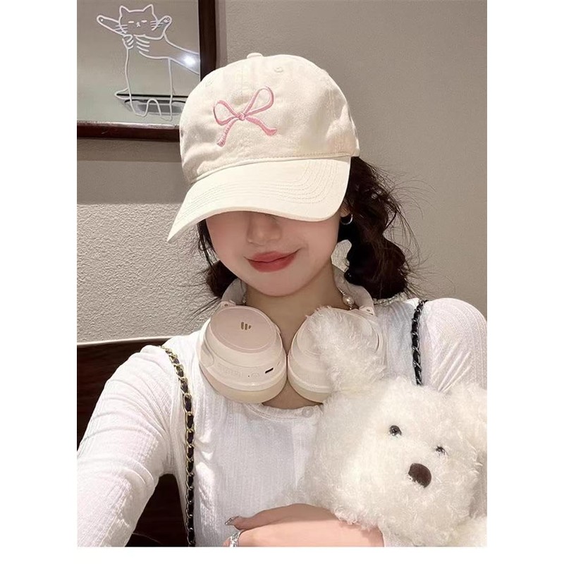 Sumleno Womens Trendy Cute Bow Baseball Cap Y2k Aesthetic Preppy Sun Cap Hiking Travel Trucker Hat Accessories (Beige Pink,one Size)