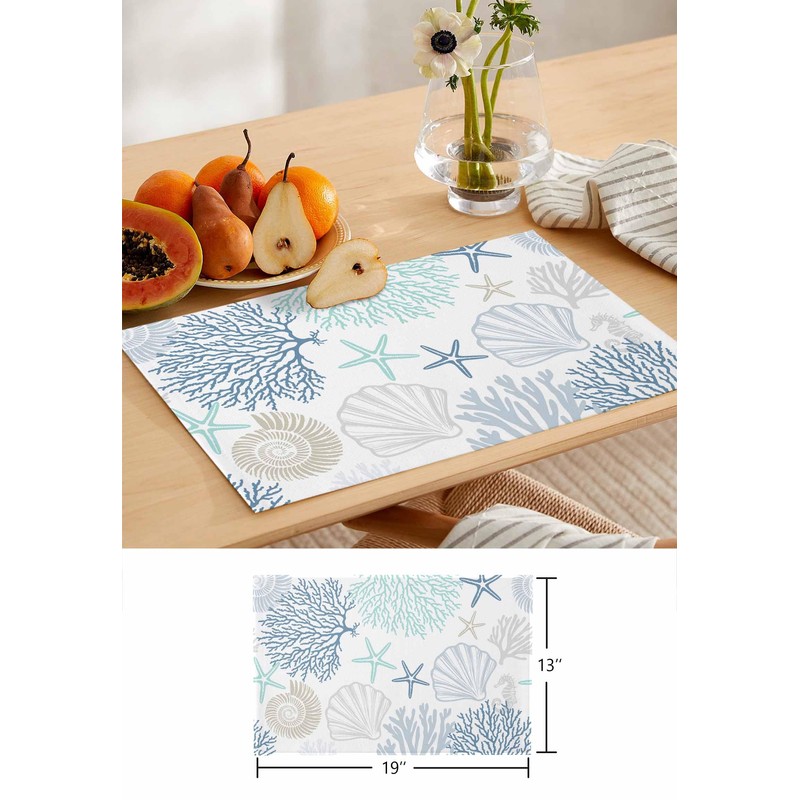- Package Includes: Package includes 4 placemats, each ocean placemat size 13 Inch by 19 Inch. Our table mats are not easy to fade when used indoors and outdoors for a long time