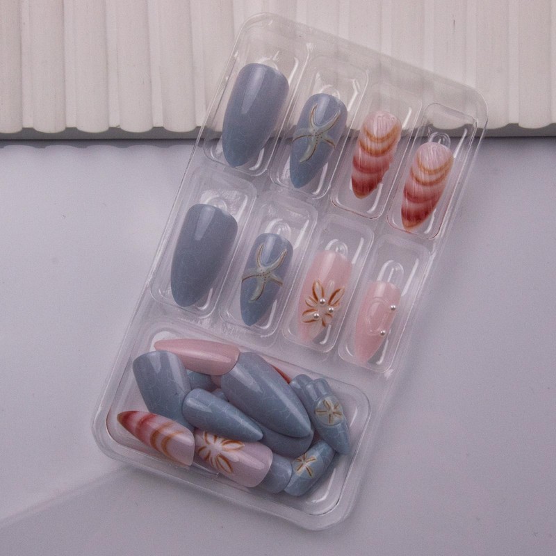 - Safe and Sturdy Design: Unique micro-thickening design to prevent blue beach Almond fake nails tips from cracking, they are harmless to humans, children and pets and gentle to your nails and skin. Manual brush gel treatment on the nail surface, pattern printing is clear and not easy to fade, providing you with a safe and comfortable nail experience