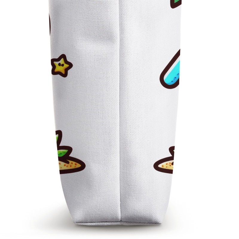 - 16” x 16” bag with two 14” long and 1” wide black cotton webbing strap handles.