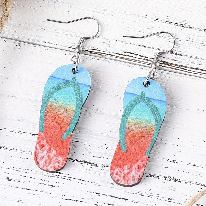- BEACH EARRINGS: Featuring playful designs like tropical coconut palm trees and flip-flops, the beach earrings add a touch of fun and relaxation to any outfit. They are lightweight and comfortable, making them ideal for long days at the beach or casual summer parties.