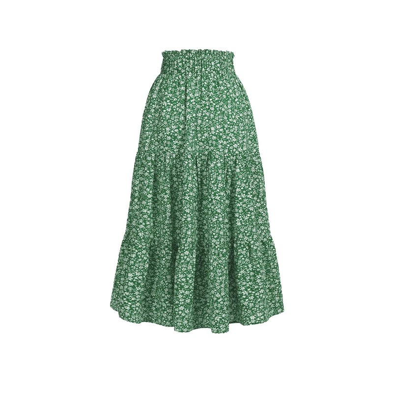 Summer Floral Skirts for Women 2024 Casual Trendy Beach Boho High Waisted Tie Front Ruffle Layered Flowy A Line Midi Skirt 626 Green Floral L