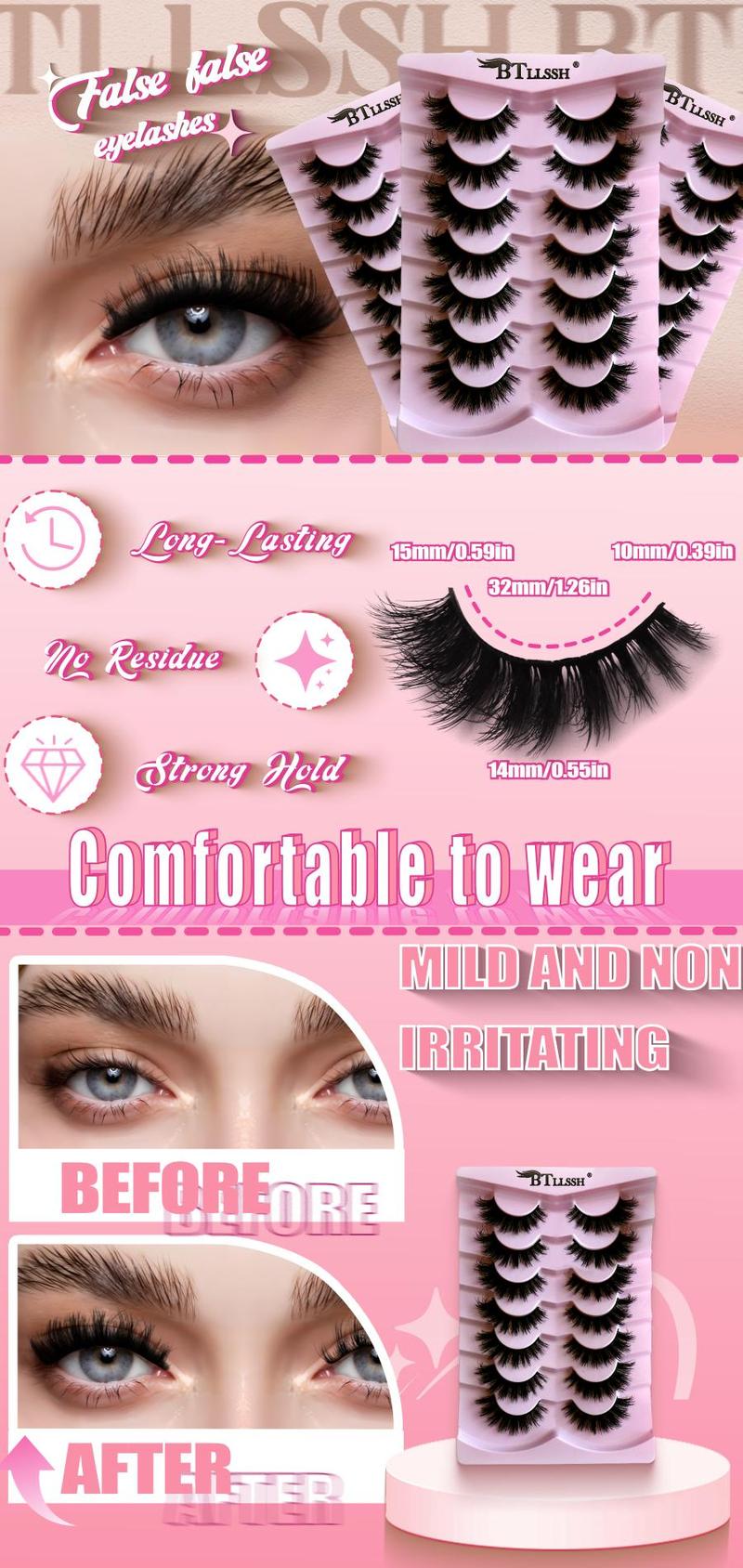 Summer Fluffy & Wispy False Eyelashes, 7 Pairs Naturally Curly Eyelash Extensions Eyelash Clusters, Eye Makeup Enhancement Tool, Summer Makeup, Christmas Gift