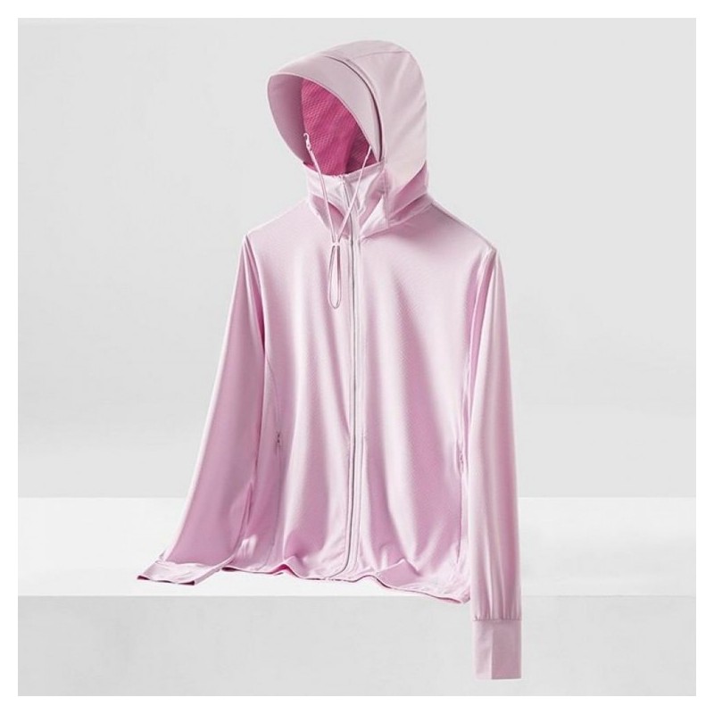 Summer Hooded Rashguard with Neck Face Cover Cap, Cooling Mesh, Quick-Dry & Stretchy 4 Colors White/L