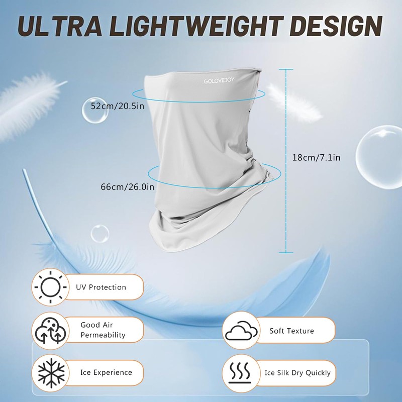 - Breathable & Cooling Ice Silk Fabric Made of lightweight ice silk material, this neck gaiter keeps you cool and comfortable in hot weather. Excellent ventilation prevents overheating and ensures all-day freshness.