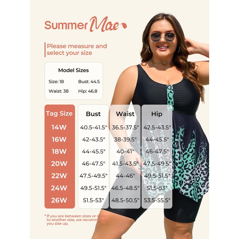 Summer Mae Plus Size Swimsuit Tankini for Women Two Piece Bathing Suit Flowy 2025 Rash Guard Swimwear with Capris Shorts GradientL Leopard Print 18 Plus