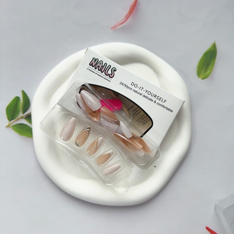 2. Choose the size that best suits your nails, taking an appropriate amount of glue or free jelly glue on the inside of the selected nail plate.