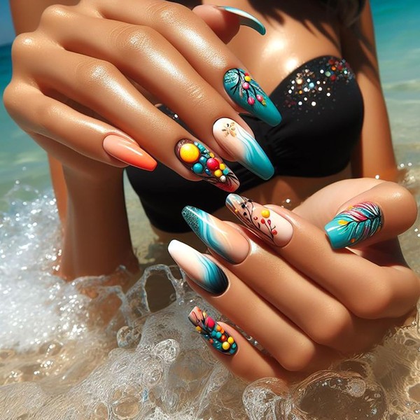 - Summer Nail Tips: These press on nails are designed with summer elements such as beach, coconut tree, and wave, bringing a strong holiday atmosphere. Suitable for matching with various summer outfits and instantly enhance the fashion sense of fingertips
