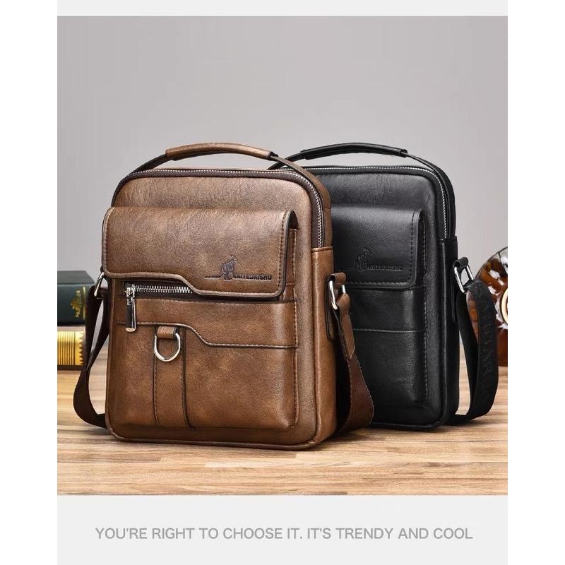 【Summer sale】Men's Casual Shoulder Bag, Large Capacity Multifunctional PU Travel Crossbody Bag, Waterproof & Wear-Resistant, Versatile Fashion Bag:_Black