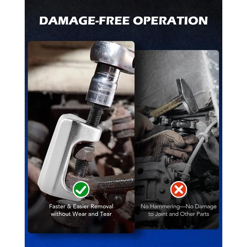 HARDENED ALLOY CONSTRUCTION: Extraordinarily tough and durable alloy means these tools can stand up to the toughest jobs. This front end service tool kit can remove the most stubborn ball joints, tie rod ends, and pitman arms