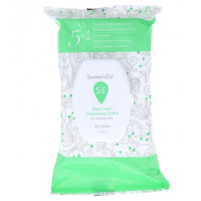 Summer’s Eve Aloe Love Gentle Daily Feminine Wipes, Removes Odor, pH balanced, 32 Count, (Pack of 2)