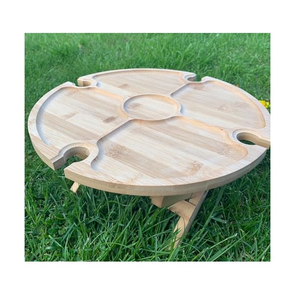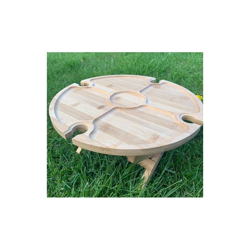 - bamboo, platter, folding table, chip n dip, alfresco, camping, picnic, festivals, beach, wine glass holders